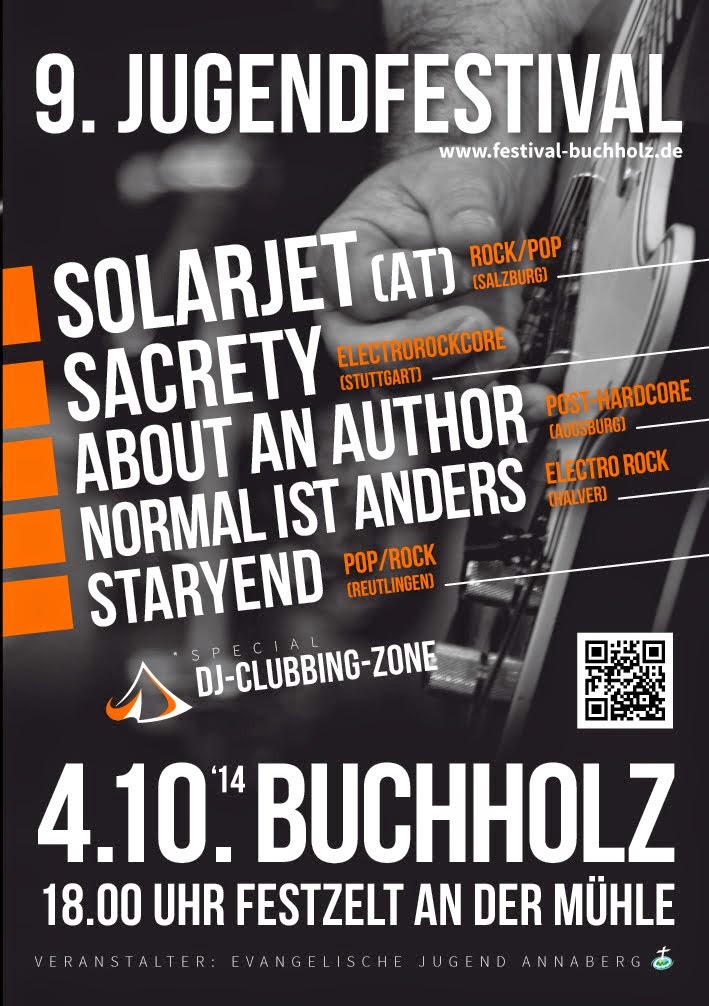 Danach wurde es laut und hart auf der Bühne, denn About an Author übernahm die Bühne und gaben den Freunden der härteren Musik was sie wollten, nämlich Hardcore vom feinsten. Das Set begann mit „My Honesty„, was natürlich gleich für einen Pit genutzt wurde. Auch die Songs des Albums „Where The Wild Things Aren’t“ kamen beim Publikum gut an. Nicht jedermanns Geschmack aber dafür gab es nebenbei die Möglichkeit das Clubbing Zelt zu nutzen welches zum ersten mal in der Geschichte des Jugendfestivals für die Besucher bereitstand. 3 DJ’s aus Chemnitz und Umgebung sorgten dort während des gesamten Festivals für Abwechslung.